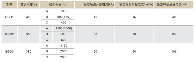 GGD型交流低压配电柜是根据能源部主管上级与广大电力用户及设计部门的要求,本着安全、经济、合理、可靠的原则设计的新型低压配电柜。产品具有分断能力高、动热稳定性好、电气方案灵活、组合方便、系列性、实用性强、结构新颖、防护等级高等特点,可作为低压成套开关设备的更新换代产品使用。